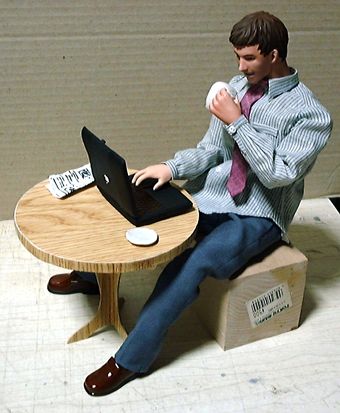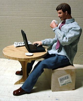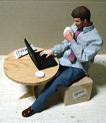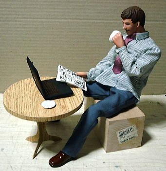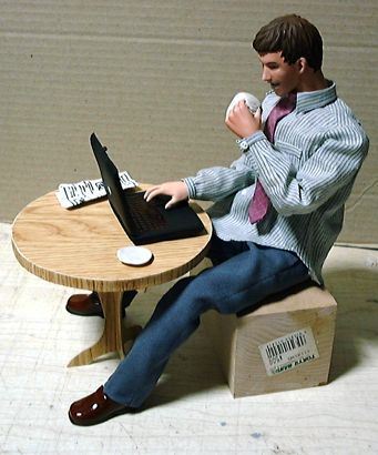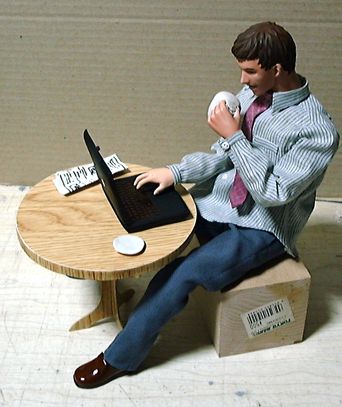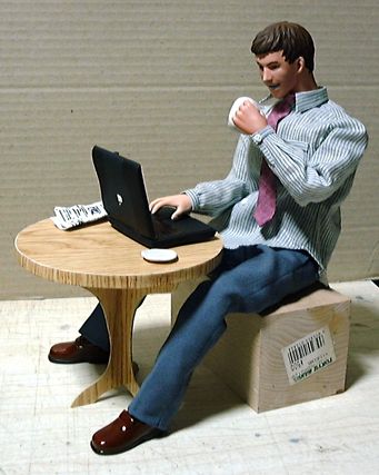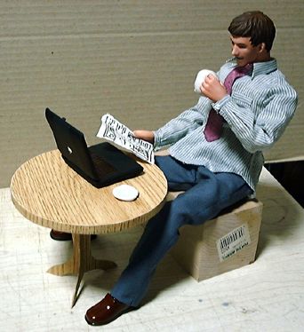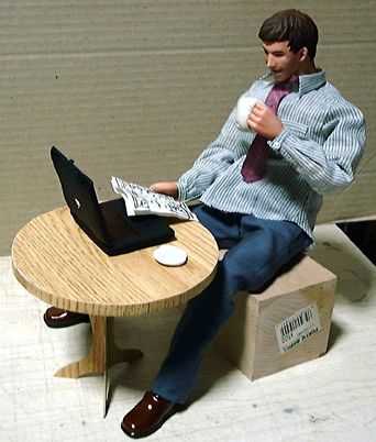 ありものの素体で取りあえずポーズを取らせてみました。テーブル・椅子は市販のものがあればそれに手を加えて使うつもりですが、なければ一から造ります。デザインなどの希望はありますか?